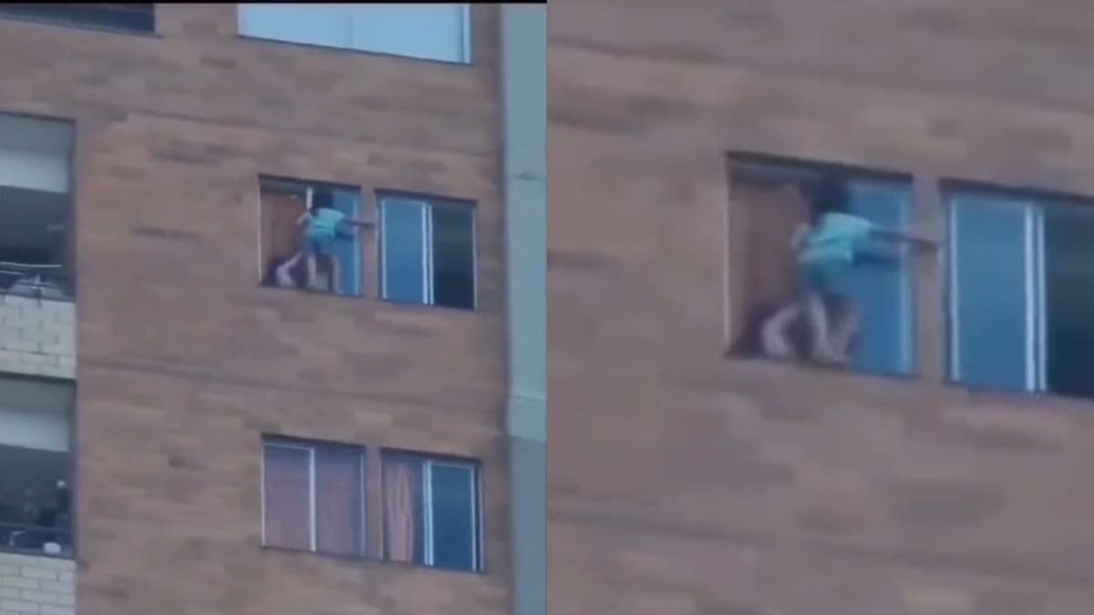 El hecho se registró en el municipio de Bello, Antioquia y en el video que tiene una duración de 37 segundos se evidencia a una de las menores intentando pasar de una ventana a otra, sin dimensionar el peligro.