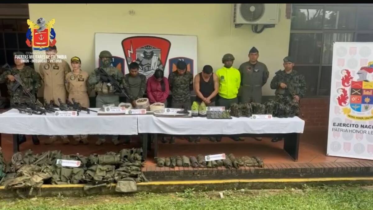 'En ese punto tropas del Ejército Nacional, la Armada y la Fuerza Aérea, con apoyo de la Policía, localizaron en flagrancia a una comisión de ese grupo criminal quienes portaban armas largas y explosivos, con los que venían adelantando acciones criminales contra la población civil como homicidios, desplazamiento forzado, extorsión, reclutamiento de menores y amenazas a líderes sociales', comunicaron.