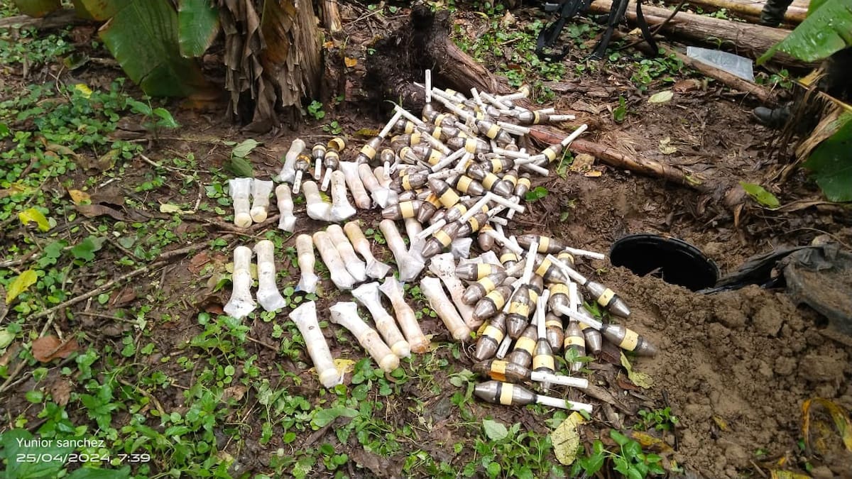 'Después de verificar información de fuente humana y técnica, se descubrió un depósito ilegal enterrado a muy poca profundidad con varios artefactos explosivos, lo cual demuestra la clara violación a los derechos humanos y el derecho internacional humanitario', explicó el jefe de Estado Mayor y segundo comandante de la Vigésima Séptima Brigada de Selva, coronel José Ángel Albino.