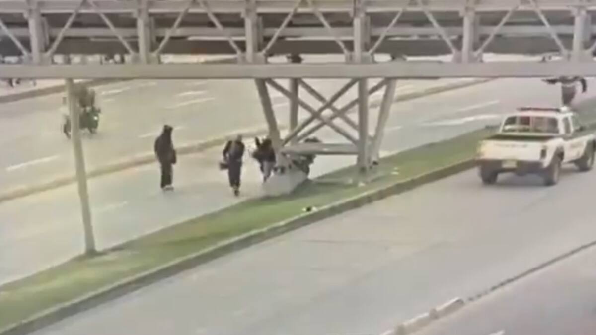 En video quedó registrado el ataque con explosivos contra una patrulla de la Policía en inmediaciones de la Universidad Nacional, en Bogotá, por parte de sujetos encapuchados.