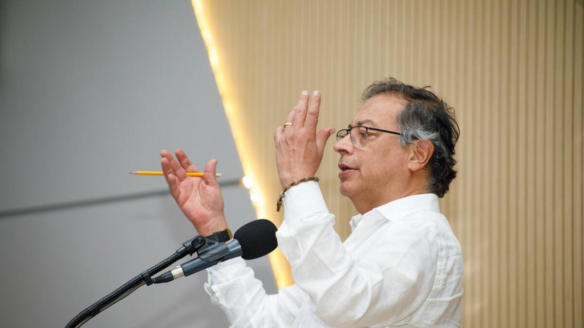 En medio de su intervención, el mandatario que el actual modelo 'solo beneficia a cinco empresas' y afecta a '55 millones de colombianos'.