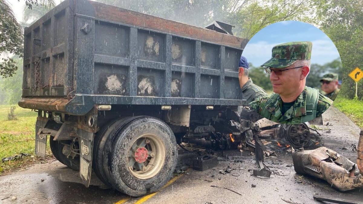 Según el general Emilio Cardozo, comandante del Ejército Nacional, en Blu Radio, el atentado se realizó con la detonación de una volqueta cargada con diecinueve bocas de fuego, que fue dejada frente a las instalaciones del batallón en Puerto Jordan.