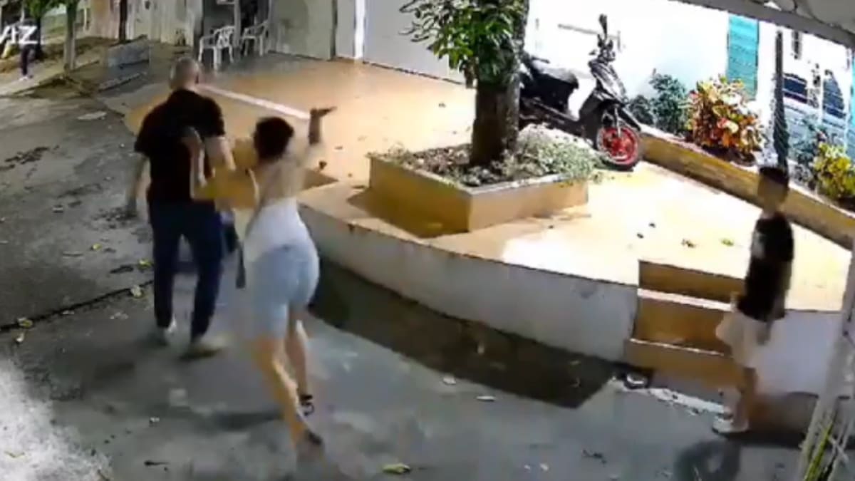 La mujer que estaba en el barrio Palmira de la ciudad petrolera, se ve cuando se abalanza al hombre con un casco. Él logra esquivar ese golpe, mientras forcejea con un chico, y dos mujeres. Sin embargo, una de las mujeres lo golpea con otro casco, y en ese momento cae al piso.