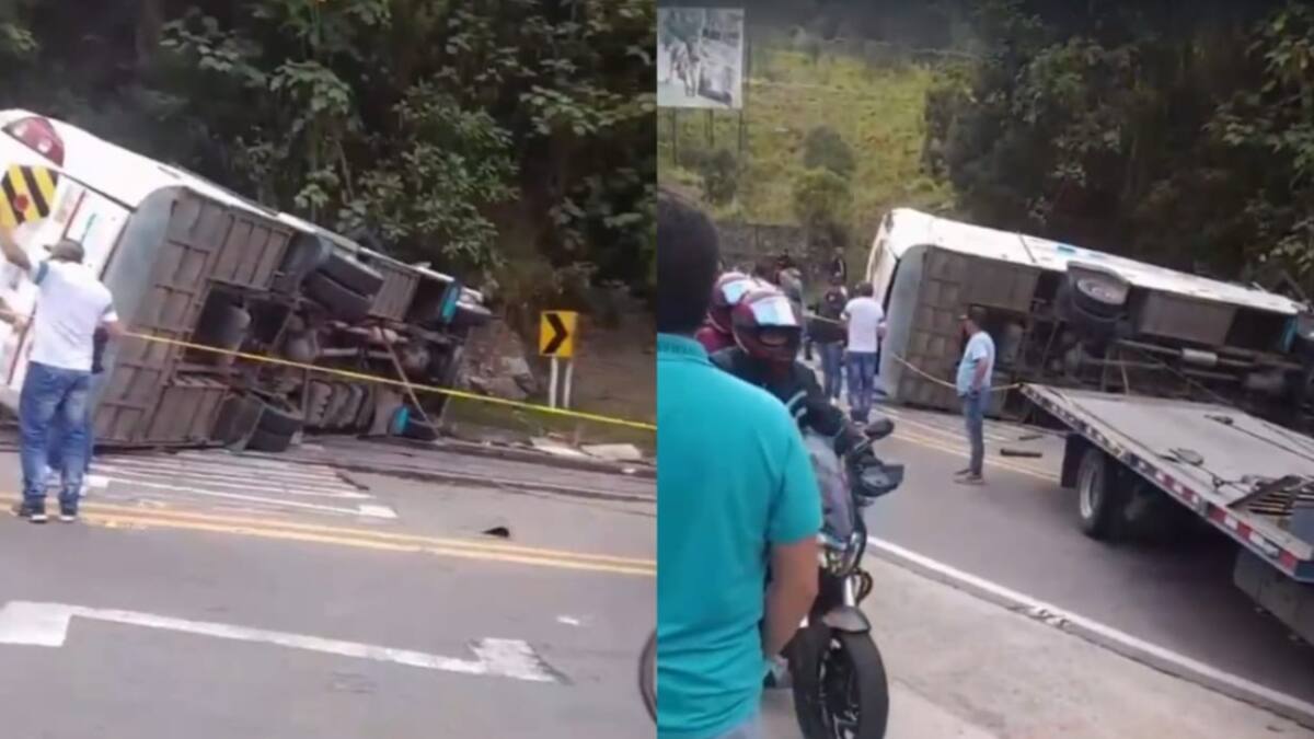 El accidente ocurrió en el kilómetro 94+800 de la vía donde un bus de la empresa TCI Turiscol con placas WPQ888, que transportaba a 28 estudiantes de veterinaria adscritos a la Corporación Educativa Nacional (CEN), se volcó en la carretera.