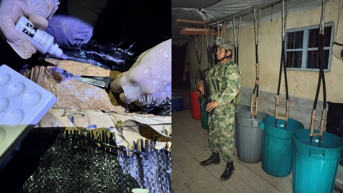 Los elementos materiales de prueba recogidos por el Ejército y la Fiscalía darían cuenta de que el laboratorio está al servicio de la estructura Jaime Toño Obando del Frente Comuneros del Sur del ELN.