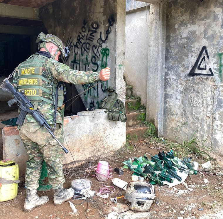 También había minas antipersona y artefactos explosivos improvisados que serían instalados en vías para atentar contra el paso de vehículos o para ser activadas ante la presencia de personas cerca a lugares en donde las disidencias tienen sus campamentos.
