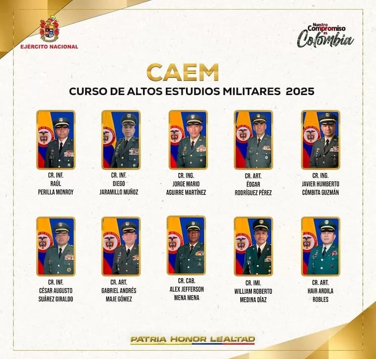 El Ejército señaló en el reporte que “a los oficiales que no fueron seleccionados para adelantar el Curso de Altos Estudios Militares y Cidenal, agradecimiento por su servicio y la satisfacción del deber cumplido. A sus familias, quienes han estado incondicionalmente a su lado, gratitud infinita”.