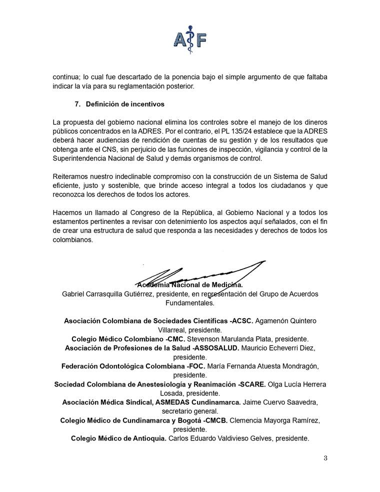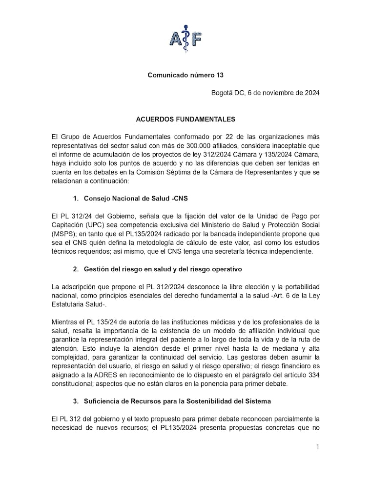 “Reiteramos nuestro indeclinable compromiso con la construcción de un Sistema de Salud eficiente, justo y sostenible, que brinde acceso integral a todos los ciudadanos y que reconozca los derechos de todos los actores. Hacemos un llamado al Congreso de la República, al Gobierno Nacional y a todos los estamentos pertinentes a revisar con detenimiento los aspectos aquí señalados, con el fin de crear una estructura de salud que responda a las necesidades y derechos de todos los colombianos”, se lee en el comunicado.