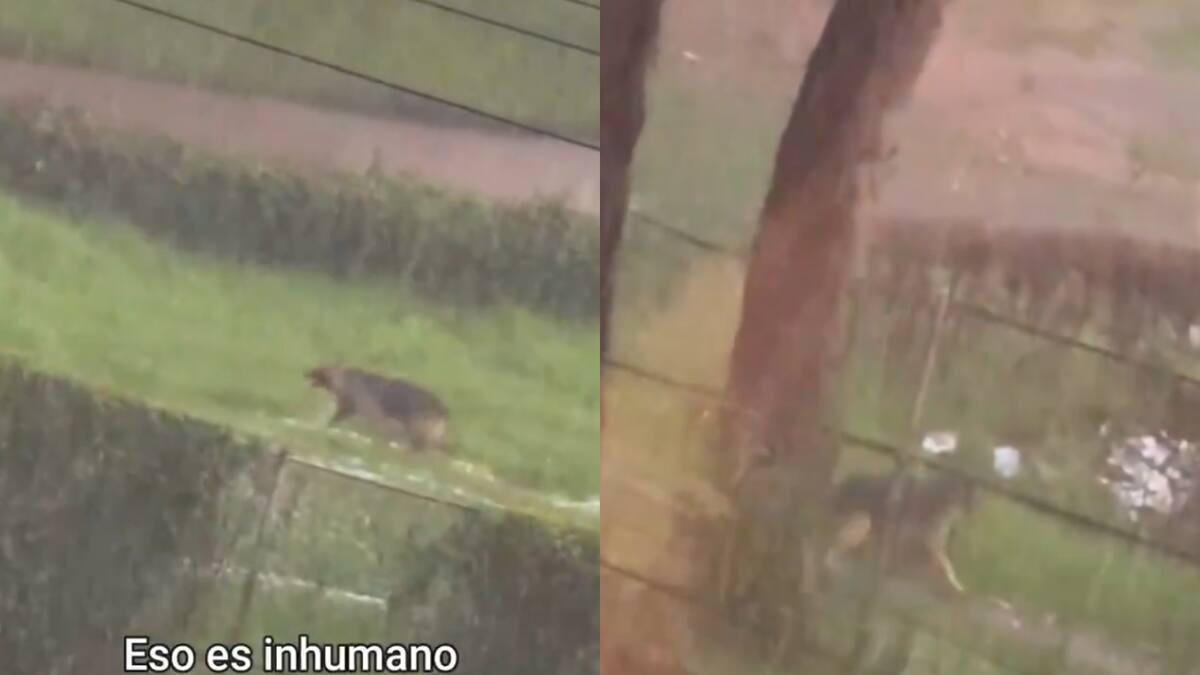 El canino se ve claramente desesperado y asustado cuando le caía la lluvia con granizo en el norte de Bogotá.