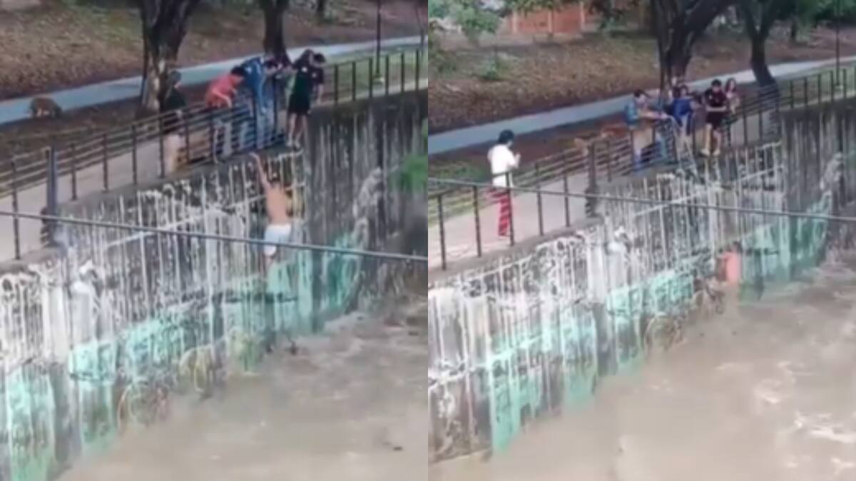 En las imágenes se observa como un hombre se lanza al río para rescatar a un perro que era arrastrado por la corriente. La identidad del sujeto no ha sido identificada, pero para los usuarios en redes sociales es un héroe.