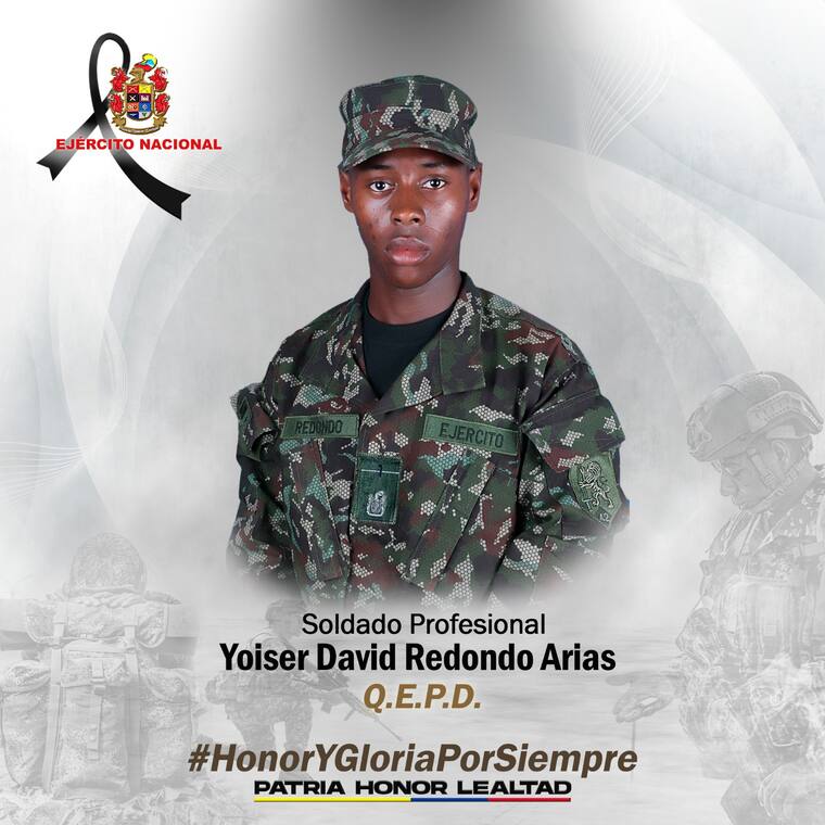 “Tras el cobarde ataque perpetrado por el ELN en Anorí, Antioquia, lamentamos informar que, pese a los esfuerzos médicos realizados en el hospital al que fue trasladado, falleció nuestro soldado profesional Yoiser David Redondo Arias, quien había resultado herido en este acto criminal. Este ataque, que también dejó varios heridos, incluyendo a un civil, representa una flagrante violación de los derechos humanos y del derecho internacional humanitario”, indicó el Ejército.