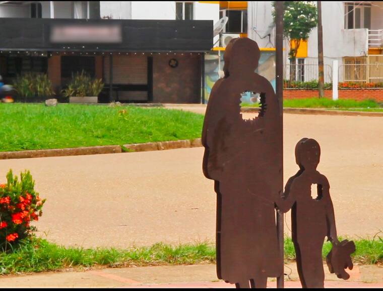 “Una organización de víctimas realizó un acto simbólico que consistió en un recorrido, comenzando en el mural ‘En homenaje a las que nunca dejaron de buscar’, seguido de una caminata hacia un espacio especialmente significativo: una escultura de la silueta de una madre tomada de la mano de su hijo pequeño, quien lleva un oso de peluche en su mano, ambos con un hueco en el pecho. La lideresa explicó que ‘el hueco en el pecho de la madre simboliza el vacío de la pérdida de su hijo desaparecido y el hueco en el pecho del niño simboliza la niñez arrebatada por la desaparición y el reclutamiento’”, narró la JEP.