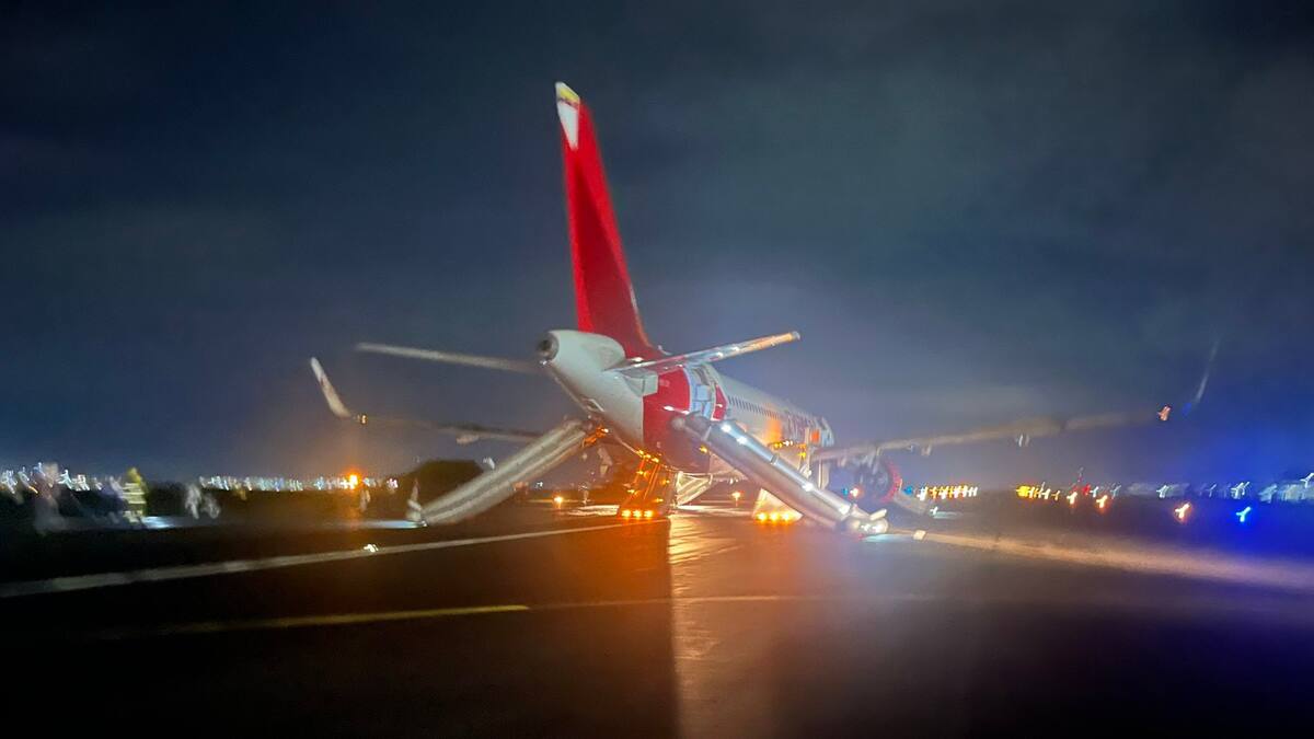 La Aeronáutica Civil informó que la aeronave presentó un fallo al momento de aplicar la potencia, previo al despegue, por lo que los pasajeros tuvieron que ser evacuados en toboganes, en medio de la pista.
