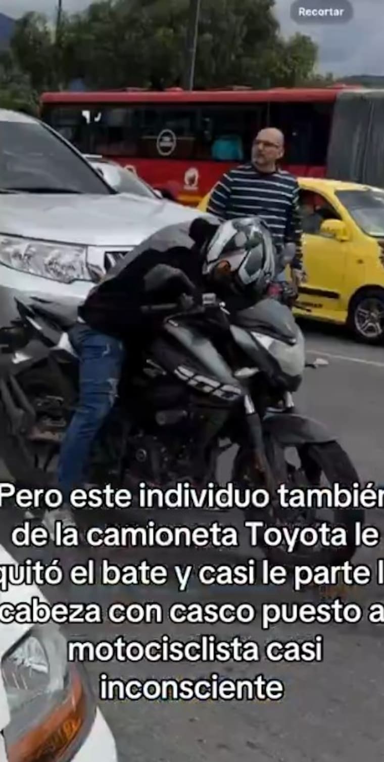 En el clip del video se ve cuando las personas se acercan al motociclista para seguir discutiendo, pero él está en la moto recuperándose.