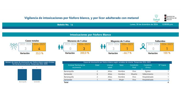 “El número de casos para el 25 de diciembre se igualó con respecto al año anterior. Se mantienen las mismas entidades territoriales con la concentración del mayor número de casos en Bogotá, Antioquia y Norte de Santander”, se lee en el comunicado.