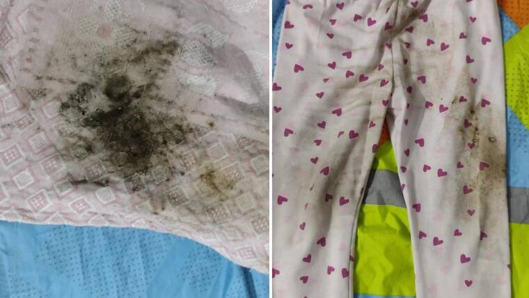 A pesar que la madre de la pequeña se dio cuenta de lo ocurrido e intentó apagar el volador, este terminó explotando y causándole a la niña quemaduras en su abdomen y piernas. En las imágenes que circulan en redes sociales puede observarse los restos de la pólvora (ceniza) sobre el tendido de cama, cobija y pijama de la menor.