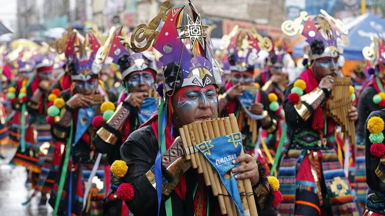 “El ‘Canto a la Tierra’ es una expresión coreográfica donde participan entre 180 y 250 danzantes, músicos y también zanqueros. Ellos toman expresiones del corazón andino (...) de Perú y de Bolivia”, explica a EFE Leonardo Sansón, historiador del Carnaval.