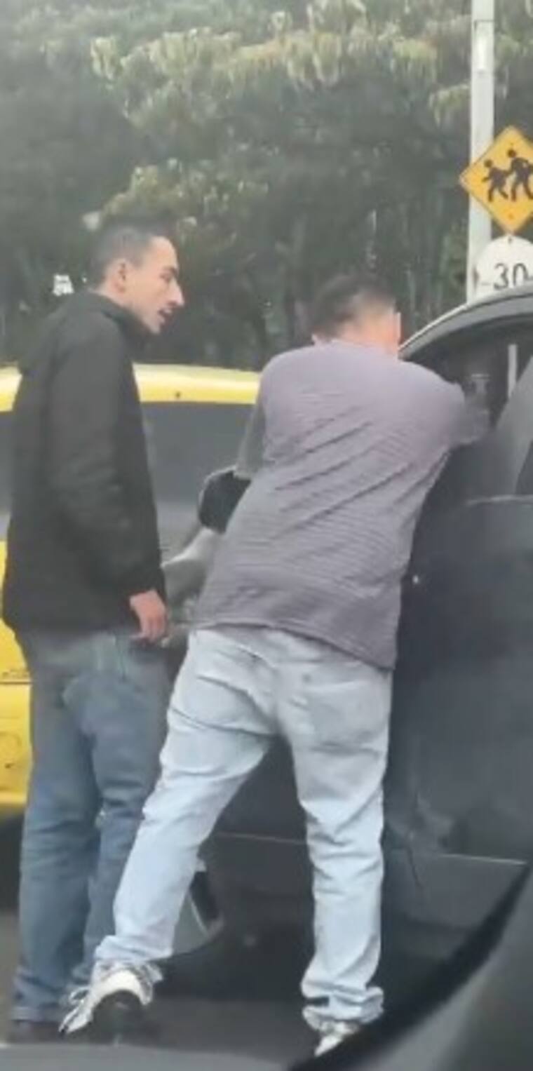 El hombre que manejaba una camioneta de color negro era acusado por estos dos supuestos taxistas de haberles cerrado la vía.