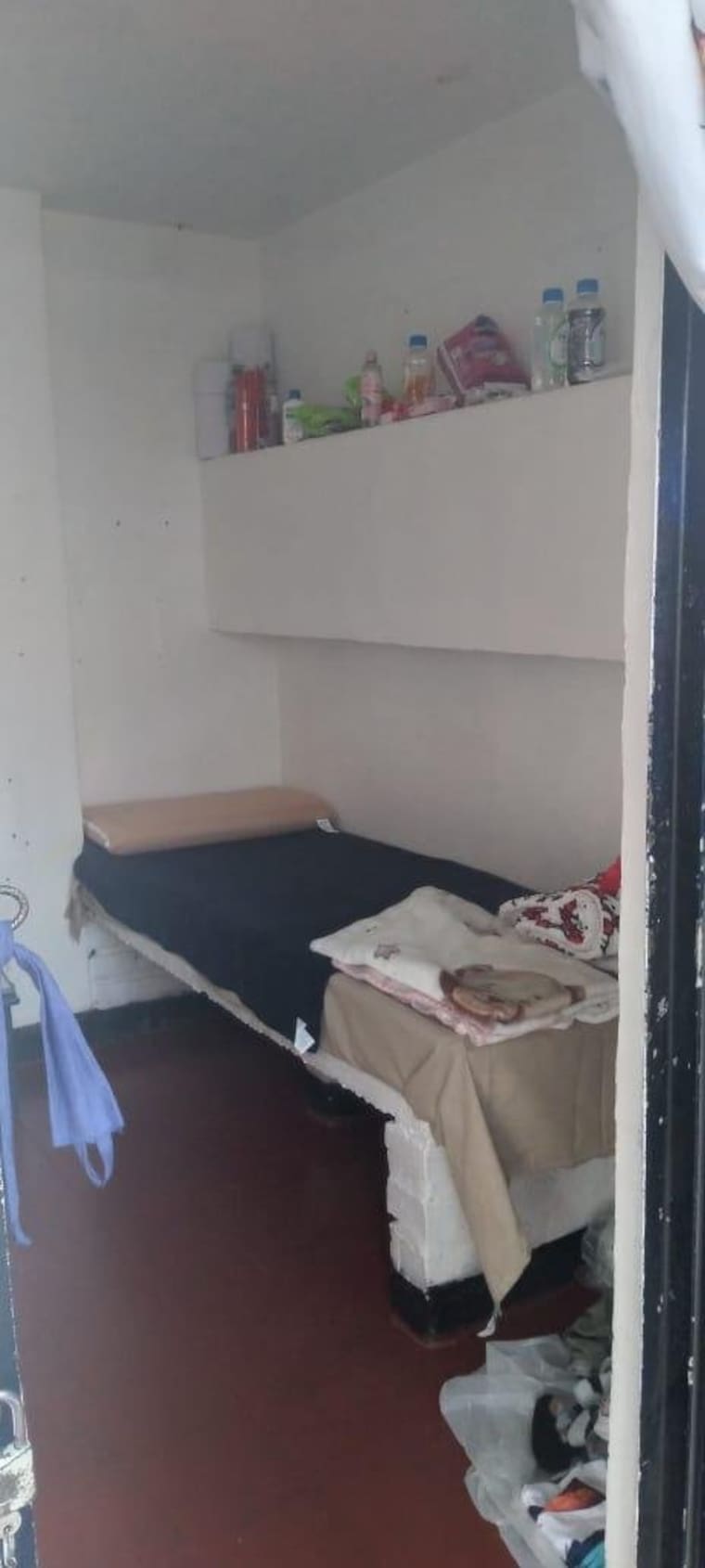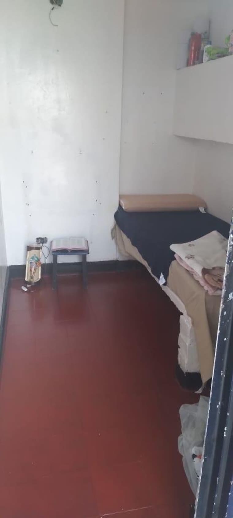 En las imágenes se puede observar una celda pequeña, que en su interior tiene una cama sencilla de concreto, una colchoneta, almohada, y una Biblia que reposa sobre una butaca que hace las veces de mesa de noche.