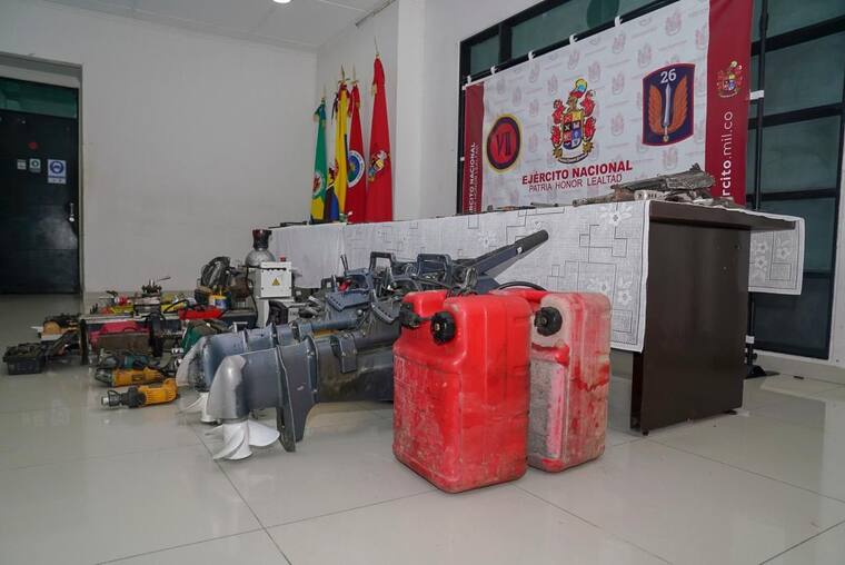 Además, se encontró material de intendencia como uniformes camuflados, equipos de campaña, chalecos, bolsos de asalto, riñoneras, correas, hamacas, cantimploras y otros elementos con insignias alusivas al Clan del Golfo, la mayor banda criminal del país.