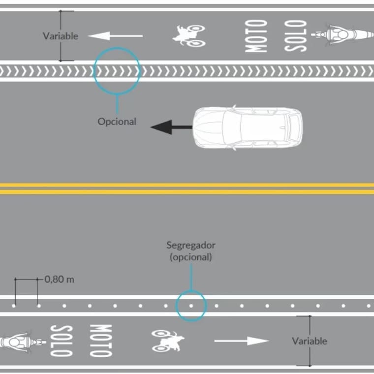En relación a las motovías, el Mintransporte explicó que estarán completamente separadas de la calzada general, con características que garanticen la seguridad de los motociclistas, como dimensiones adecuadas y elementos de protección.