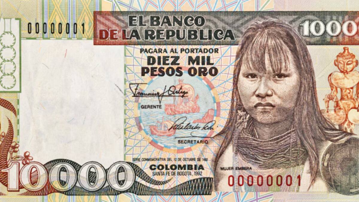 La mujer embera protagonizó el anverso del primer billete de 10 mil pesos oro, el cual fue emitido por el Banco de la República para conmemorar el quinto centenario de la llegada de los españoles a América el 12 de octubre de 1492.