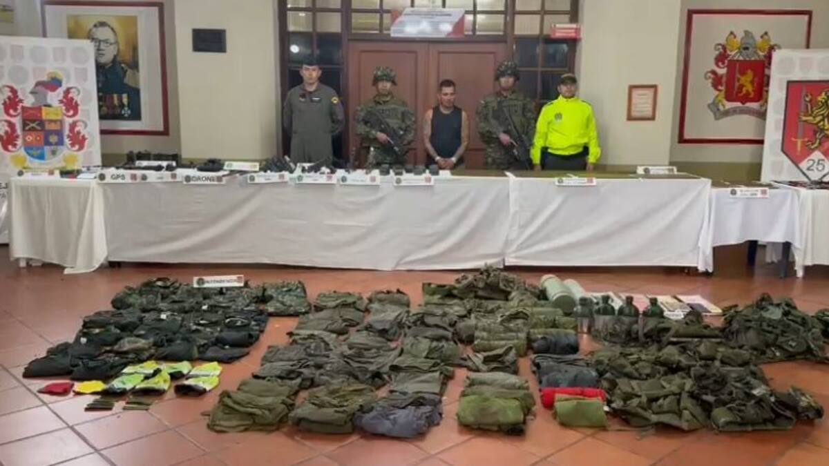 También en el operativo se incautó un amplio arsenal de armamento y municiones, así como material tecnológico y de intendencia: 2 fusiles M4, 4 pistolas calibre 9 mm, una Miniuzi calibre 9 mm, 2 escopetas, 2 granadas de mano, un dron, equipos de comunicación, insumos médicos y prendas de uso privativo de las Fuerzas Militares.