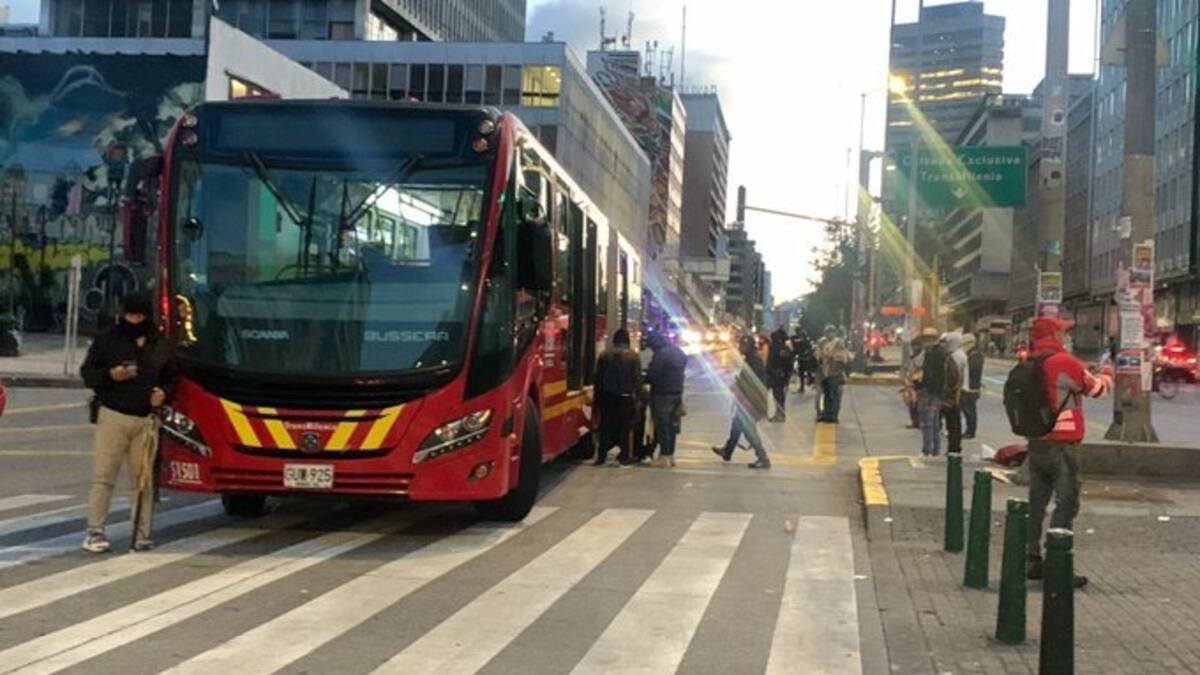 La protesta impidió los servicios de movilidad entre la carrera 10 y calle 10 de la capital colombiana, afectando a cinco estaciones del Transmilenio.