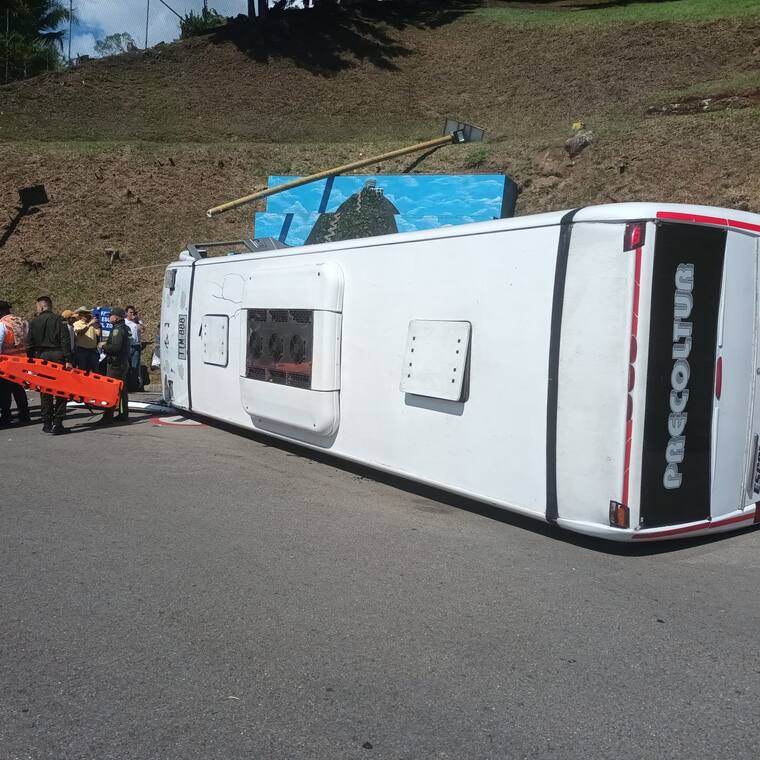 Un bus de servicios especiales se volcó en la entrada de la emblemática Piedra del Peñol de Guatapé, destino turístico ubicado en el Oriente de Antioquia, dejando un saldo de 12 personas heridas, entre ellos siete extranjeros.