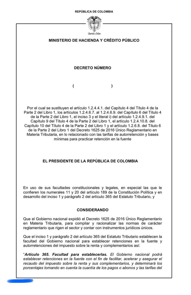 A través de un borrador de decreto que el Ministerio de Hacienda y la Dirección de Impuestos y Aduanas Nacionales (Dian) publicaron para comentarios, el Gobierno Nacional busca mejorar sus problemas actuales de caja con un aumento en el esquema de autorretención en la fuente a título del impuesto de renta.