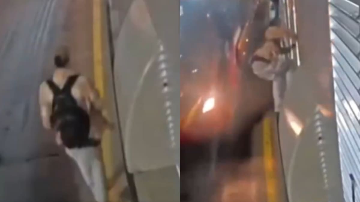 Todo quedó grabado en video por las de las cámaras de seguridad de la estación. En las imágenes se nota que el joven, luego de subirse, pierde el equilibrio justo en el momento en que viene un bus. El hombre es rozado por el vehículo levemente, luego cae a la vía, pero por muy poco se salva de ser atropellado.