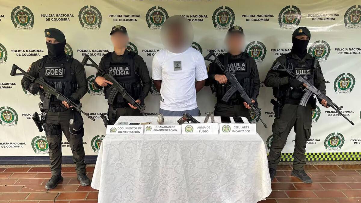 En la operación de captura, coordinada con la Fiscalía General de la Nación, se incautaron un arma de fuego, dos proveedores, una granada de fragmentación y dos celulares.