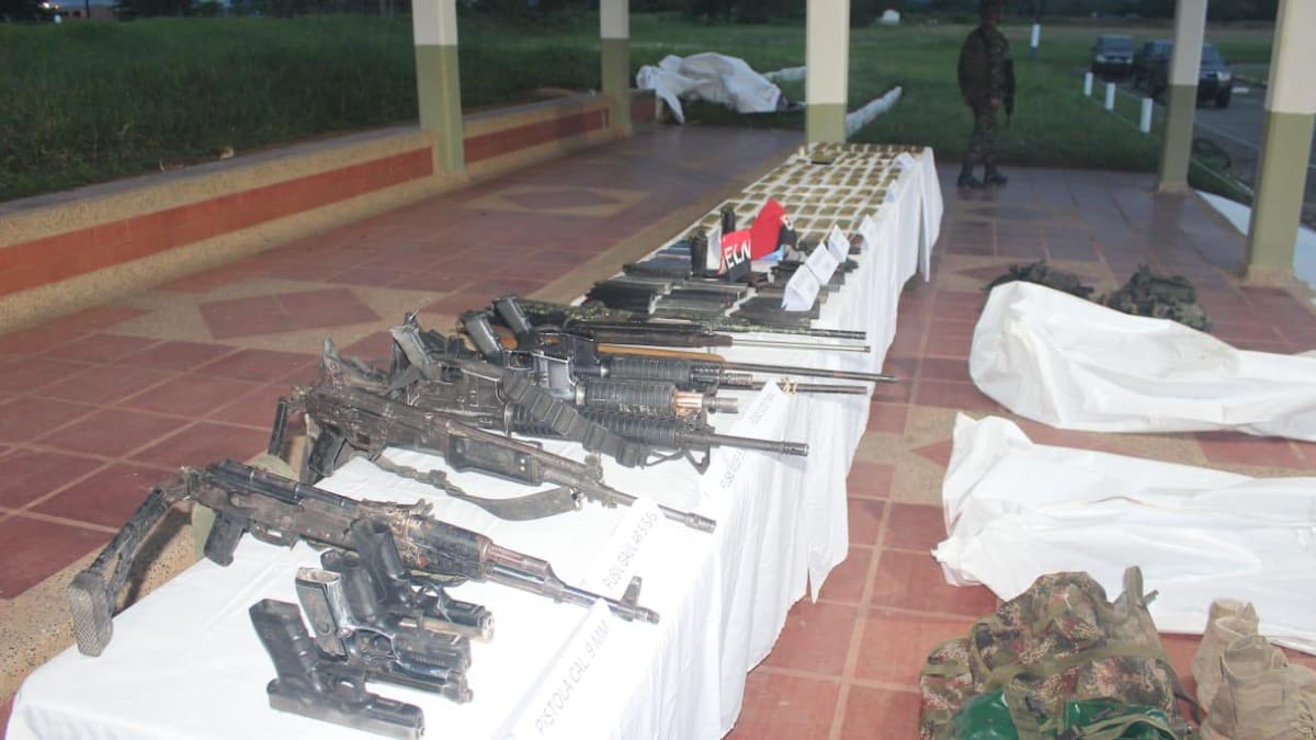 El combate de los militares fue contra el frente Domingo Laín Sáenz del ELN, como parte de la estrategia de control territorial y protección de la población civil y en la que también se logró la incautación de fusiles, pistolas, granadas, chalecos, municiones y equipos de campaña.
