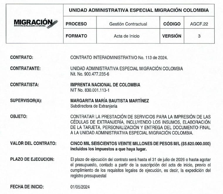 En julio de 2024 Migración Colombia le pidió a la Imprenta un plan de contingencia para imprimir 2.433 cédulas que llevaban semanas pendientes. La respuesta de la Imprenta fue no entregar el plan a tiempo y solicitaron una prórroga.