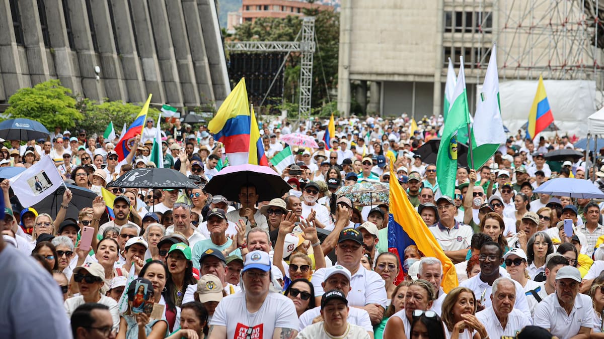 La manifestación llevada a cabo este sábado 5 de julio fue convocada por miembros del partido Centro Democrático y movimiento Creemos, del alcalde Federico Gutiérrez. Las personas arribaron al emblemático lugar con banderas, pancartas, y gritaron arengas en defensa de las instituciones.