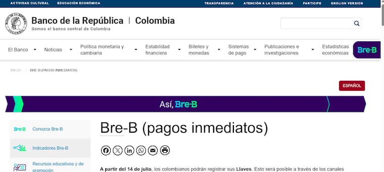 El Banco de la República desde el pasado lunes 14 de julio, puso en funcionamiento su nuevo sistema de transferencias instantáneas conocido como Bre-B, una plataforma que permitirá enviar y recibir dinero al instante, sin importar el banco, billetera digital o entidad financiera.