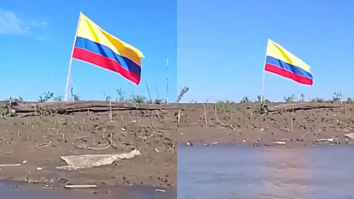 Un representante de la Municipalidad de Santa Rosa de Loreto, Max Ortiz, llegó al lugar para retirar la bandera colombiana en compañía de la Policía Nacional y efectivos de las Fuerzas Armadas de Perú.