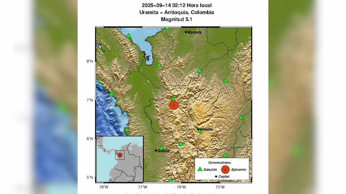 El Servicio Geológico Colombiano informó que en la madrugada de este domingo 14 de septiembre un fuerte sismo de 5.1 sacudió parte del país, especialmente al departamento de Antioquia.