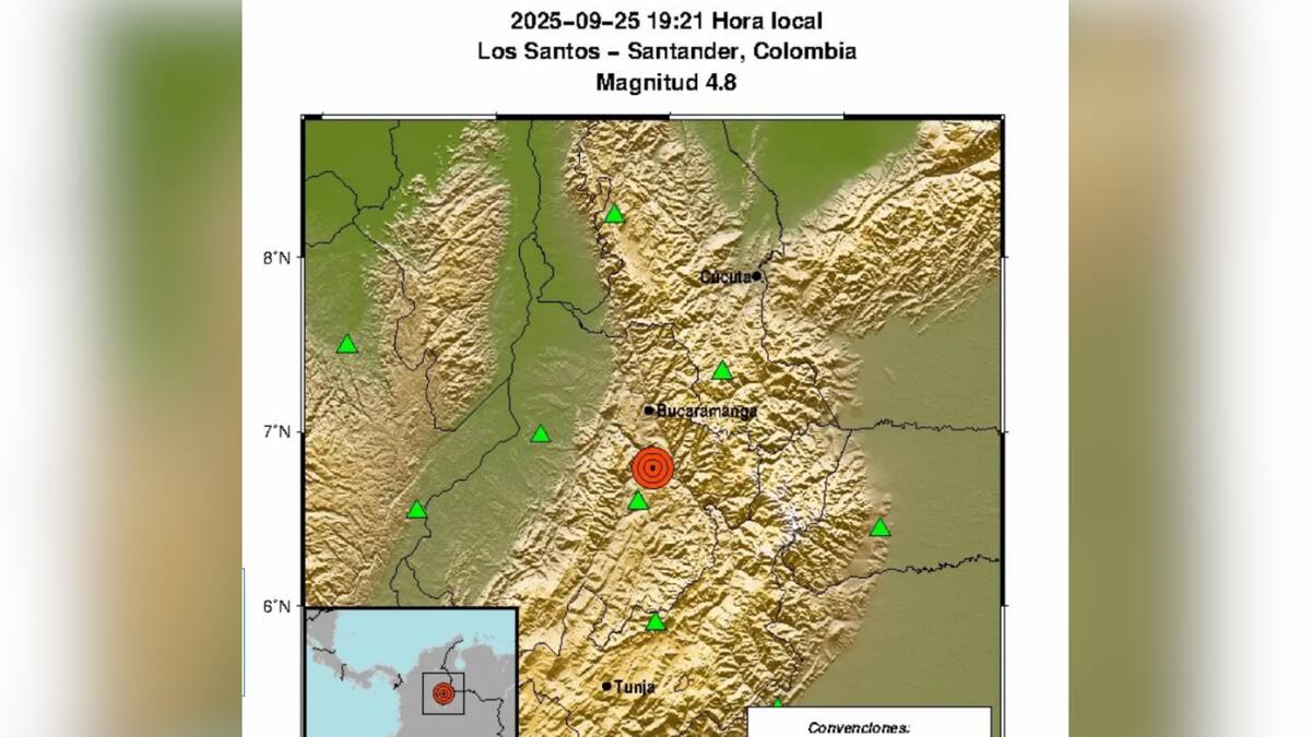 En la noche de este jueves 25 de septiembre se reportó un fuerte temblor en el departamento de Santander, según indicó el Servicio Geológico Colombiano (SGC). Usuarios en redes reportan que el movimiento telúrico se sintió también en otras regiones del país.