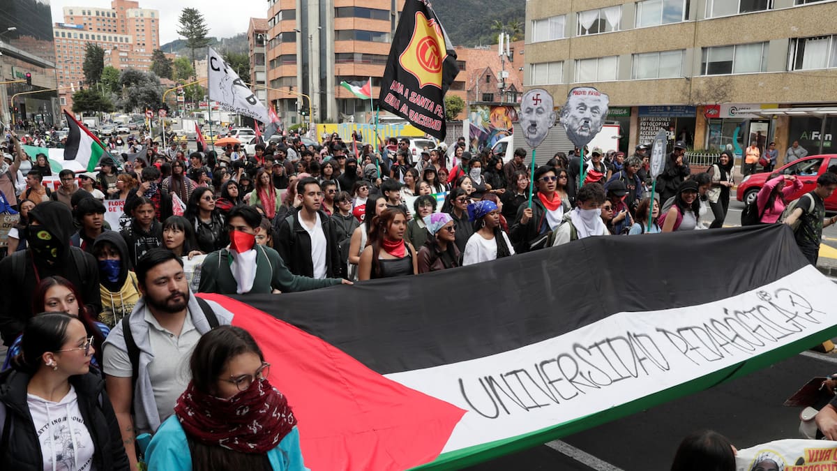 La protesta del martes fue convocada por el Frente de Acción por Palestina contra la guerra en Gaza y el punto de encuentro es la Embajada de los Estados Unidos en Bogotá, lugar en el que los manifestantes realizaron un plantón y desde donde se desplazaron luego hasta la Plaza de Bolívar, en el centro de la ciudad.