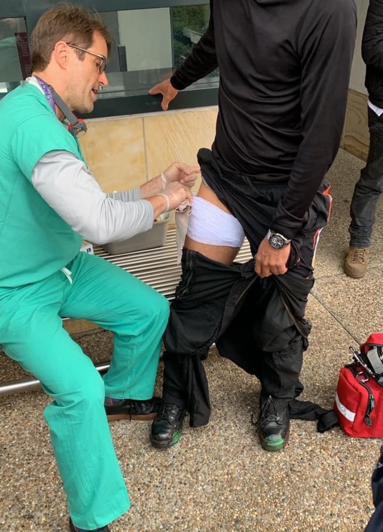 En varios videos y fotografías que circulan en redes sociales se observa a dos de los uniformados que fueron alcanzados por las flechas, uno en un brazo y otro en una pierna.