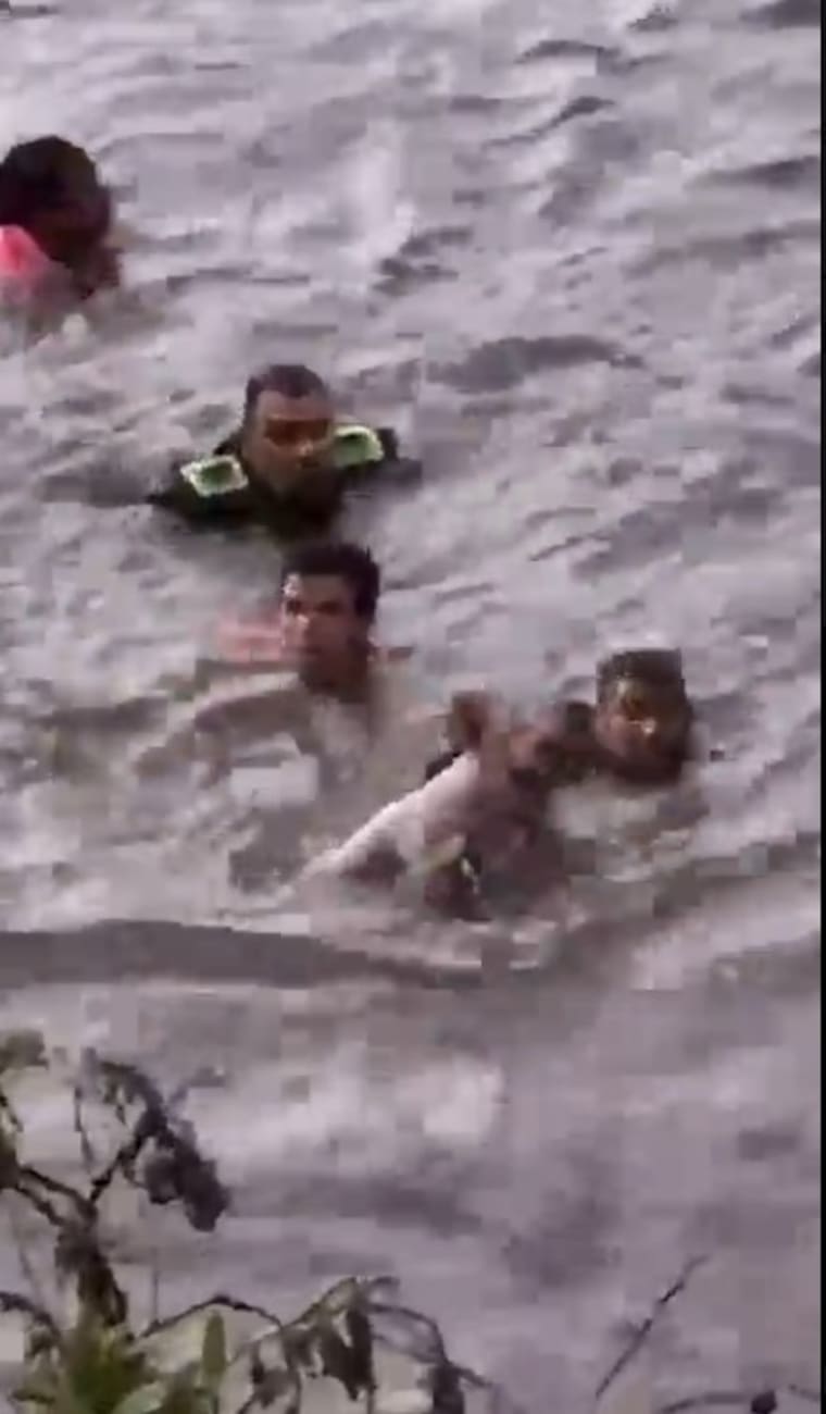 Ante la escena, los uniformados no dudaron en lanzarse al agua para evitar una tragedia mayor. “Al ver que la niña caía al río, reaccionamos de inmediato. Mi compañero tomó a la menor y yo me dirigí a la mujer para ponerla a salvo”, relató uno de los policías involucrados en el rescate, adscrito al CAI La Gaitana.