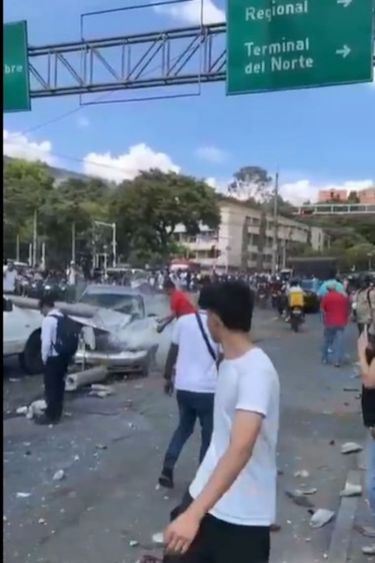 En otras imágenes se observa cómo un bus es arrastrado metros abajo hasta terminar en un lote cercano, mientras varios carros fueron lanzados contra postes de energía que terminaron derrumbados sobre la vía.