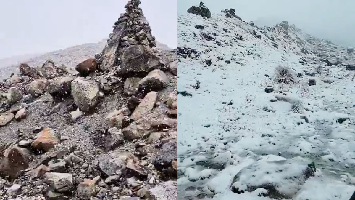 La prolongada precipitación sorprendió a los guías locales, visitantes y montañistas, quienes no dudaron en captar en video con sus celulares como caía la nieve e iba cubriendo el paisaje.