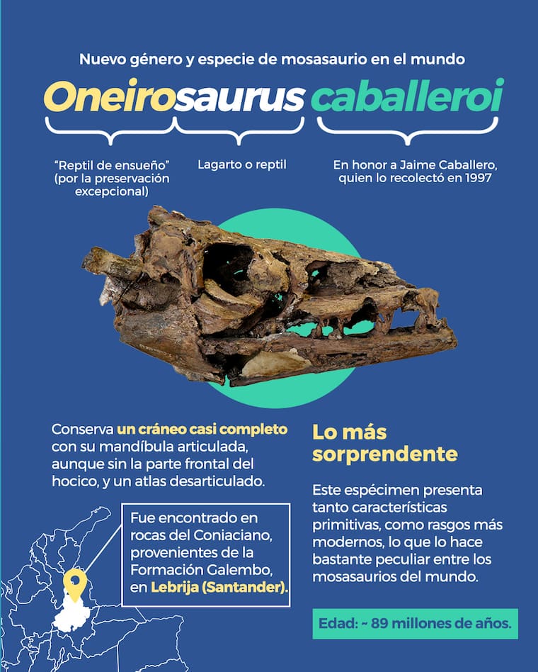 Con unos 89 millones de años, su nombre científico, ‘Oneirosaurus caballeroi’, significa “reptil de ensueño”, en referencia a su excepcional estado de conservación.