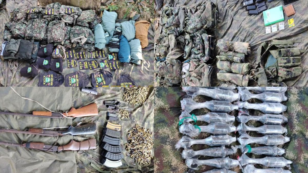 Durante la acción militar, los soldados incautaron el siguiente material: 1.396 cartuchos de diferentes calibres, una pistola, 21 granadas hechizas adaptadas para ser usadas con drones, tres granadas artesanales, una libra de pólvora negra, un artefacto tipo balón bomba, tres escopetas, 13 proveedores, nueve cintelas, dos chalecos multipropósito, uniformes de uso privativo de las Fuerzas Militares, además de material de intendencia y equipos de comunicación.