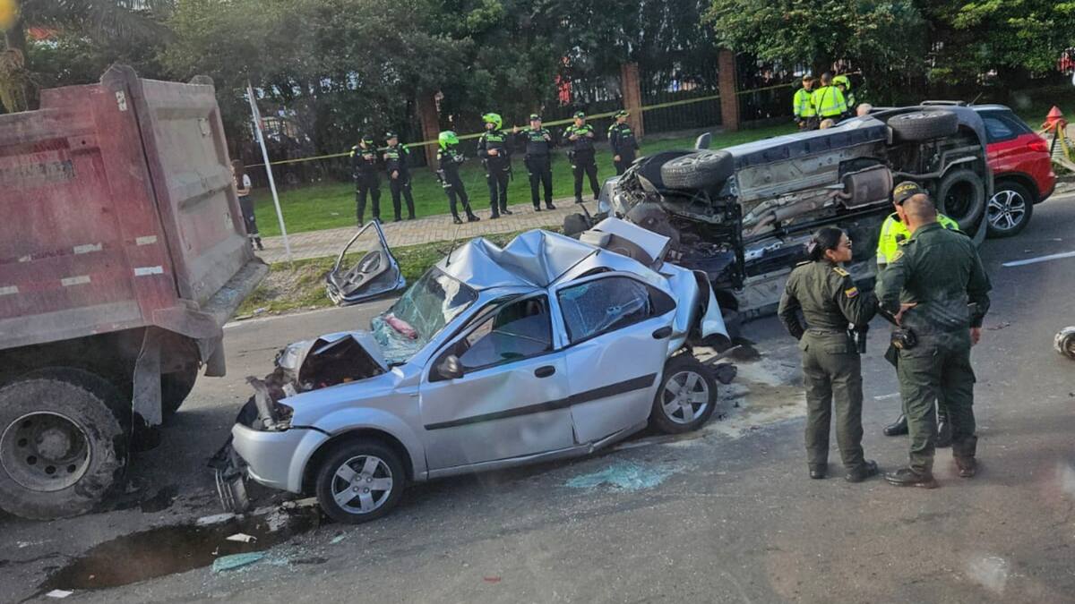 El siniestro ocurrió alrededor de las 3:00 p. m. e involucró una volqueta, una motocicleta y dos vehículos particulares. Al lugar llegaron unidades de criminalística para adelantar las investigaciones y esclarecer las causas exactas del choque.