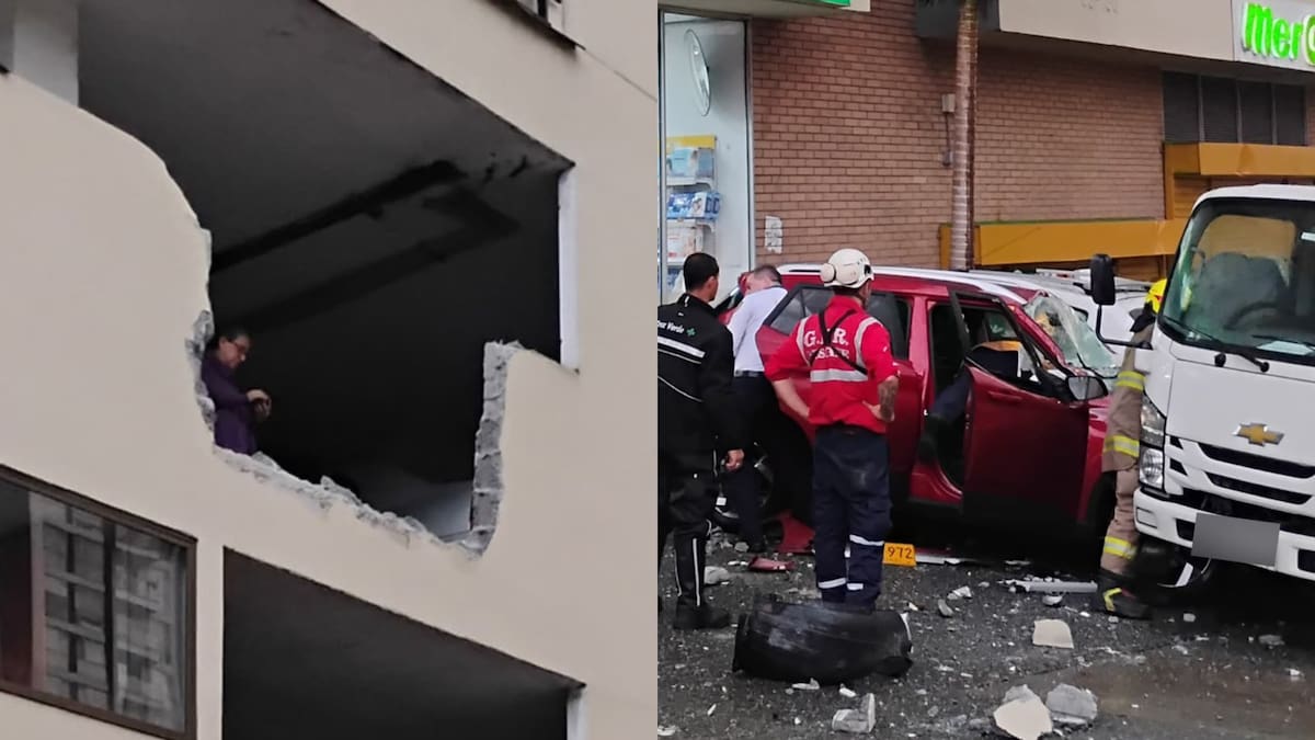 De acuerdo con el reporte del Cuerpo de Bomberos de la capital de Caldas, el carro accidentado terminó sobre la avenida Kevin Ángel tras derribar el muro del tercer piso del parqueadero del Edificio Montevedra.