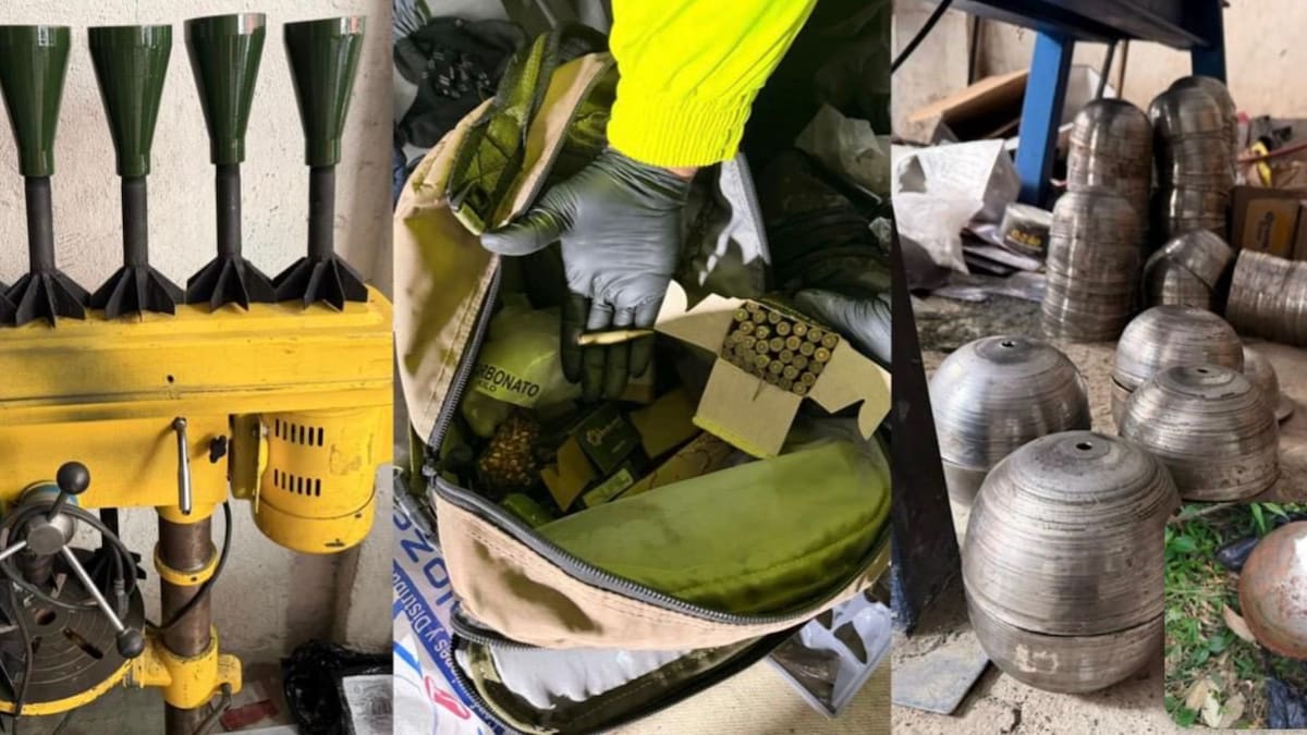En el lugar fueron hallados un lanzagranadas de fabricación artesanal, varias granadas ensambladas y en proceso de elaboración, cilindros metálicos mecanizados que servirían como contenedores de carga explosiva, munición de distintos calibres y herramientas industriales utilizadas para su fabricación.