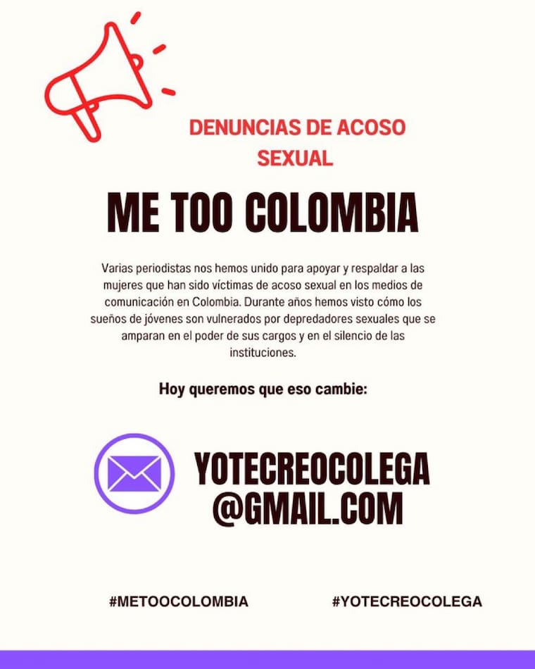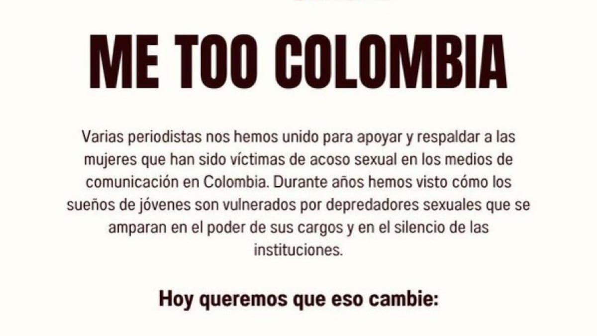 “Varias periodistas nos hemos unido para apoyar y respaldar a las mujeres que han sido víctimas de acoso sexual en los medios de comunicación en Colombia”, escribió en su cuenta de X.
